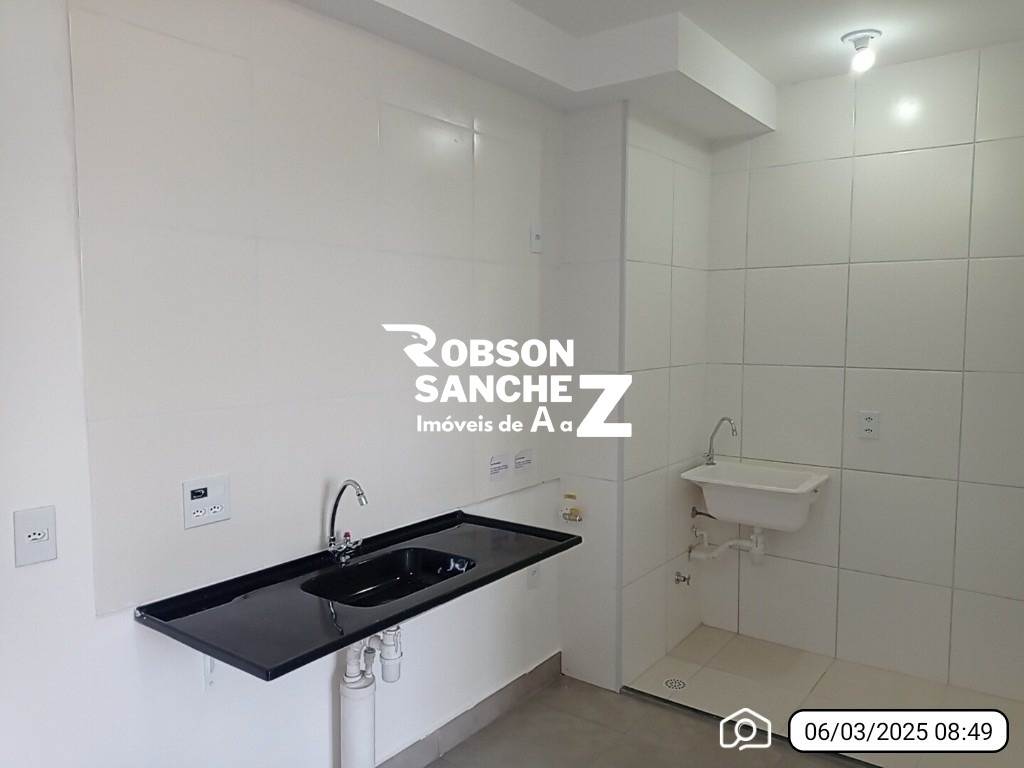 Apartamento com piso frio na sala e cozinha, piso laminado nos quartos, cozinha americana, 2 quartos, banheiro.