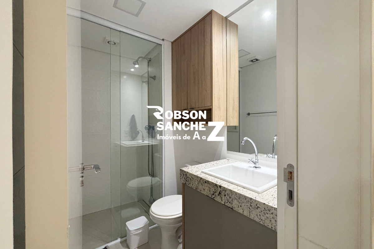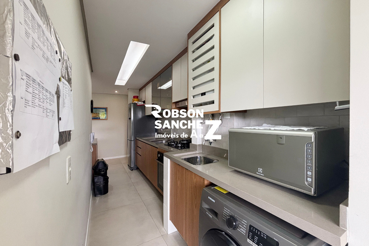 A cozinha é prática e funcional, integrada à área de serviço, otimizando o espaço e facilitando o dia a dia. O apartamento conta com banheiro social e 2 vagas de garagem cobertas.