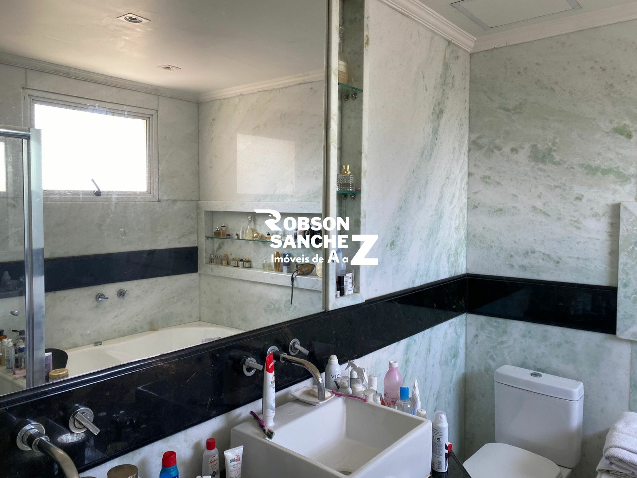 O apartamento conta com 4 suítes, cada uma oferecendo um ambiente privado e sofisticado. As suítes são projetadas para garantir conforto e privacidade, com acabamentos de alta qualidade e detalhes refinados. A suíte master é um verdadeiro oásis, com um espaçoso closet e um banheiro luxuoso com uma banheira de imersão, chuveiro separado e bancadas em mármore. As outras suítes são generosamente dimensionadas e bem equipadas, cada uma com seu próprio banheiro completo e armários embutidos.