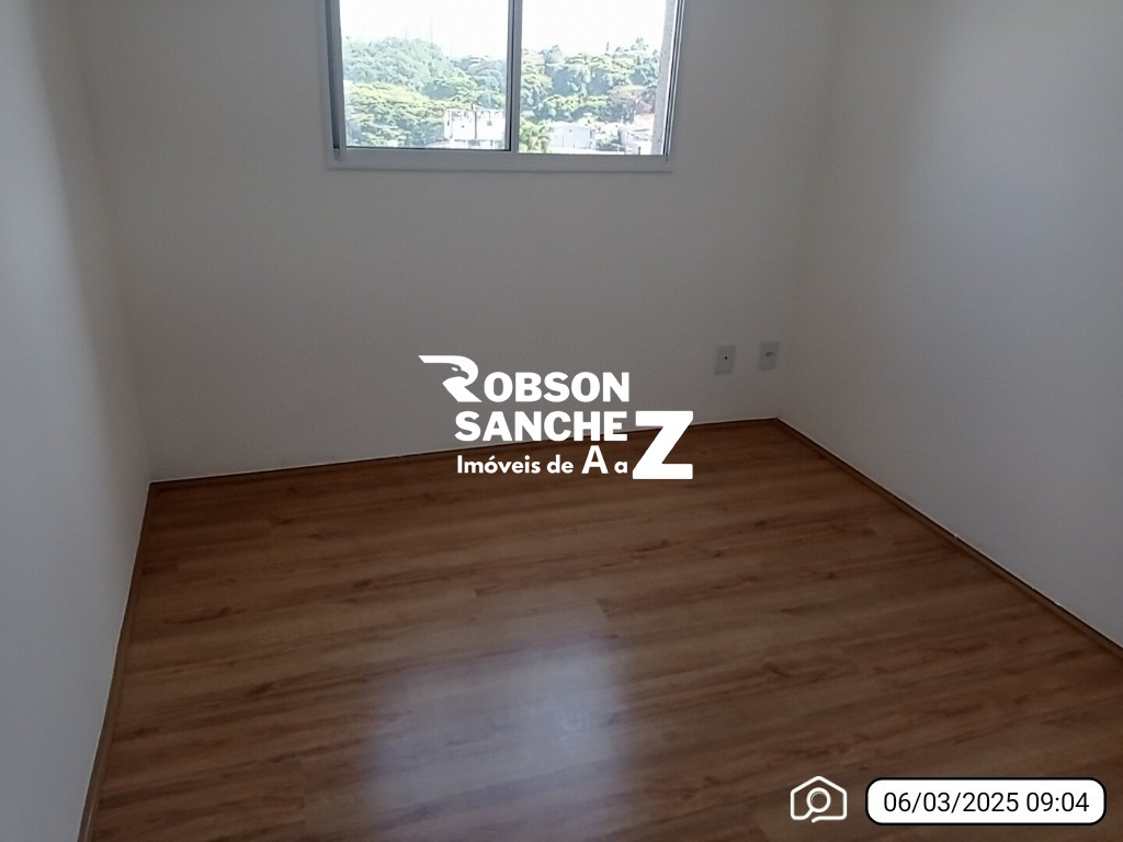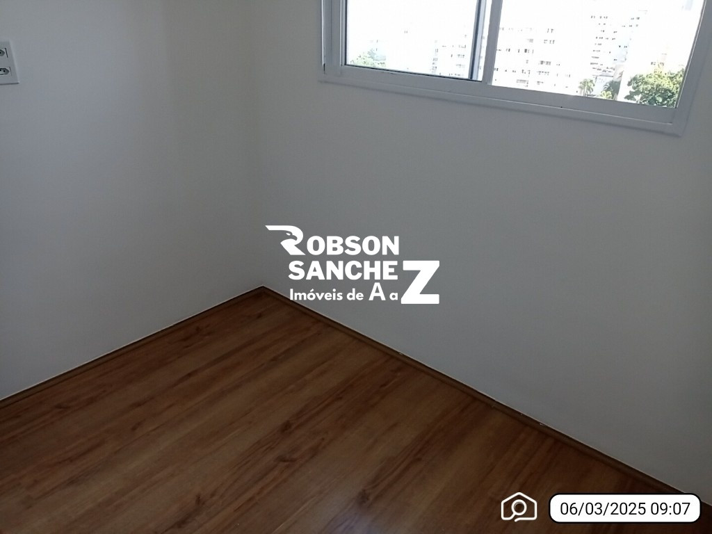 Apartamento com piso frio na sala e cozinha, piso laminado nos quartos, cozinha americana, 2 quartos, banheiro.